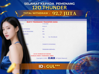 DEWATOGEL JACKPOT LIVE CASINO DI 12D THUNDER Rp 92.750.000,- LUNAS