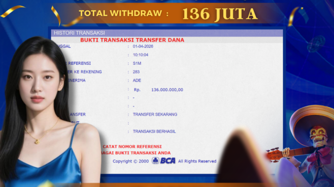 DEWATOGEL mengucapkan selamat kepada user id : DER*** yang telah berhasil mendapatkan jackpot pada permainan SLOT DI GATES OF GATOT KACA. Kemenangan sebesar Rp 136.000.000,-. telah dibayarkan LUNAS oleh pihak dewatogel kepada pemilik user id setelah yang bersangkutan mengisi formulir withdraw. Proses pencairan dana berlangsung sangat cepat hanya dalam waktu 5-10 menit sudah berada dalam rekening pemilik user id. Bukti transfer yang dapat anda lihat adalah bukti SAH / VALID yang langsung di dapatkan melalui bukti transaksi dari Bank yang digunakan untuk pengiriman dana pada rekening pemilik user id. Terima kasih kami sampaikan kepada para pengguna setia DEWATOGEL yang telah menggunakan situs kami, sebagai Bandar Terpercaya yang pastinya membayar semua kemenangan member hingga lunas. Apakah DEWATOGEL PENIPU ? Reputasi “DEWATOGEL TERPERCAYA” sudah sangat melekat. puluhan hingga ratusan ribu pengguna setia DEWATOGEL tetap menggunakan situs terbesar dan terbaik di Indonesia ini. Hapus rasa was-was dan khawatir anda, kemenangan anda berapapun PASTI dibayarkan hingga lunas.