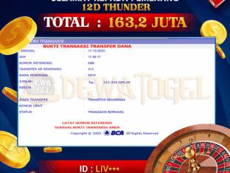 DEWATOGEL JACKPOT LIVE CASINO DI 12D THUNDER Rp 163.250.000,- LUNAS MEMBER DEWATOGEL MENERIMA PELUNASAN KEMENANGAN DEWATOGEL JACKPOT LIVE CASINO DI 12D THUNDER Rp 163.250.000,- LUNAS […]